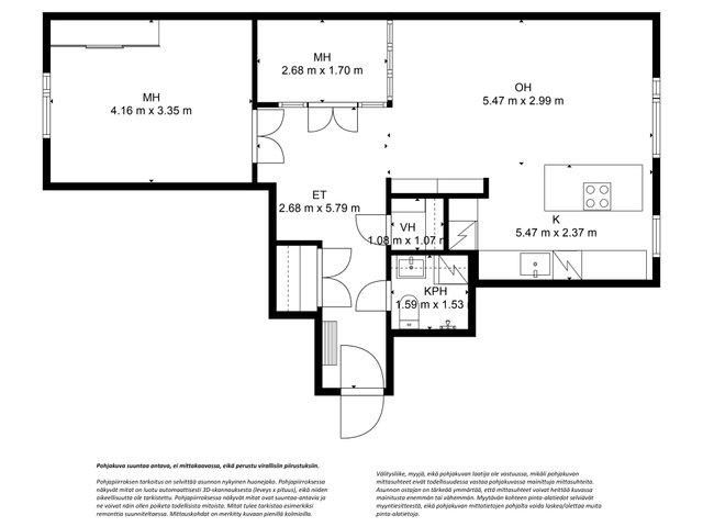 - Pinta-alaa ei ole tarkistusmitattu. Mainittu pinta-ala saattaa tämän ikäisessä kohteessa poiketa olennaisesti nykyisten standardien mukaan laskettavasta asuinpinta-alasta. Todellinen asuinpinta-ala voi olla yhtiöjärjestyksessä, isännöitsijäntodistuksessa ja myyntiesitteessä mainittua pienempi tai suurempi.