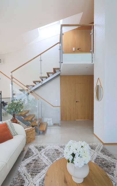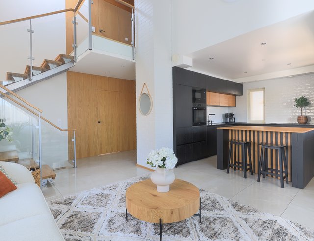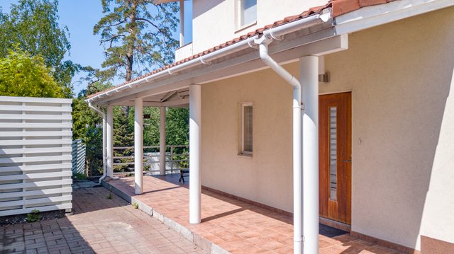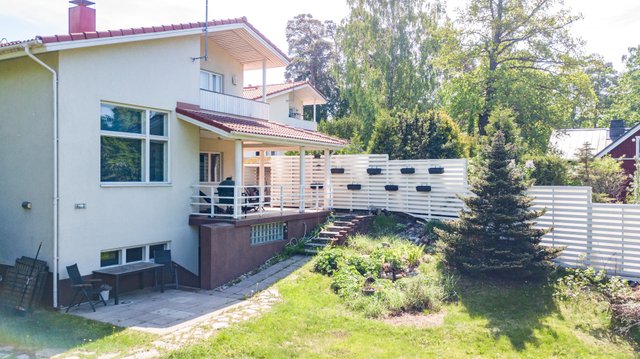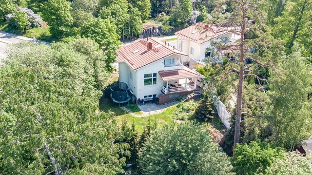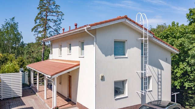 Talon keskiössä ovat yhteiset oleskelutilat, jotka kruunaa isot ikkunat sekä huikea lähes viiden metrin huonekorkeus. Tilasta on käynti patiolle ja suojaiselle pihalle. Vehreä ja avara pihapiiri, jossa tilaa esim. istutuksille sekä trampoliinille. Tyylikäs tammi keittiö, jossa on muun muassa siirrettävä saareke, kivitasot sekä integroidut kodinkoneet. Paljon säilytys-ja laskutilaa, jossa riittää tilaa niin aamupalatoiminnoille kuin leipomiselle. Olohuoneen vierestä löytyy kaksi makuuhuonetta ja erillinen wc. Alakerrasta löytyy takka-, työ- ja kodinhoitohuone, sekä saunaosasto. Yläkerrassa on kolme makuuhuonetta, kylpyhuone ja parveke.