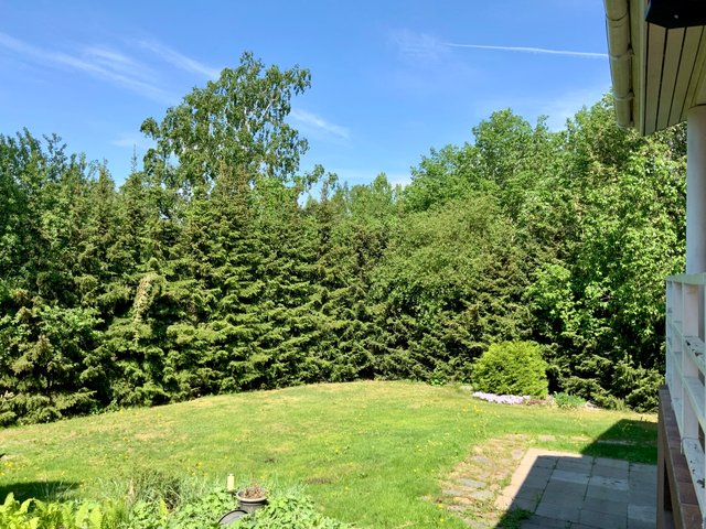 - Kiinteistön koko pinta-ala on 1438m² ja myytävän talon määräosan osuus on noin 719m²