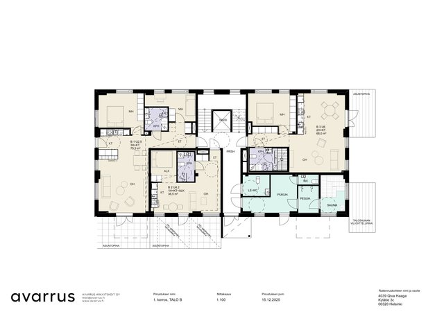 - Huoneistopohjiin on mahdollisesti valittavissa lisähintaisia SSA-moduulin osia: asuntokohtainen sauna tai kodinhoitohuone. Moduuleiden sopivuus valittuun huoneistoon on varmistettava tapauskohtaisesti.