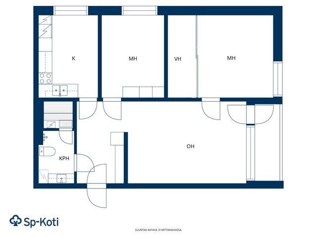 - Ei tarkistusmitattu. Pinta-alat saattavat tämän ikäisissä kohteissa (yhtiö rekisteröity ennen 01.01.1992) poiketa olennaisestikin asuinrakennusten nykyisten mittaustapojen ja standardien (SFS 5139) mukaan laskettavasta asuintilojen pinta-alasta. Pinta-ala voi siis olla edellä mainittua pienempi tai suurempi.