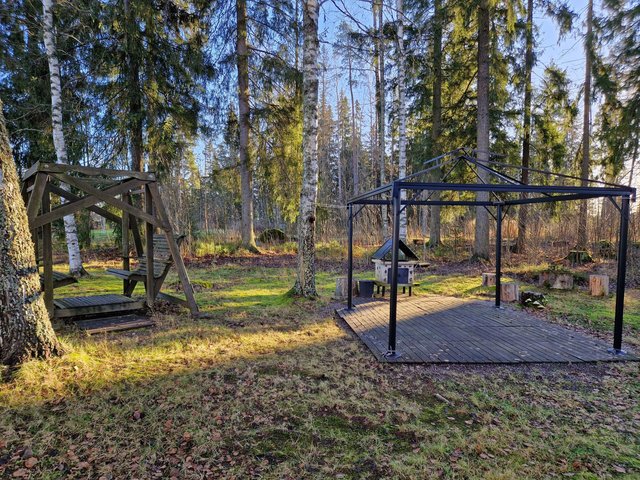 - Lapsille keinu ja hiekkalaatikko. Grillikatos kalusteineen.