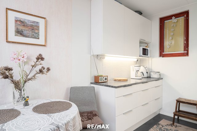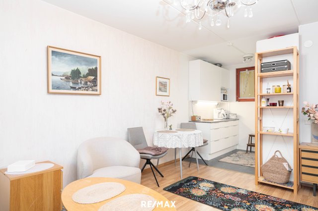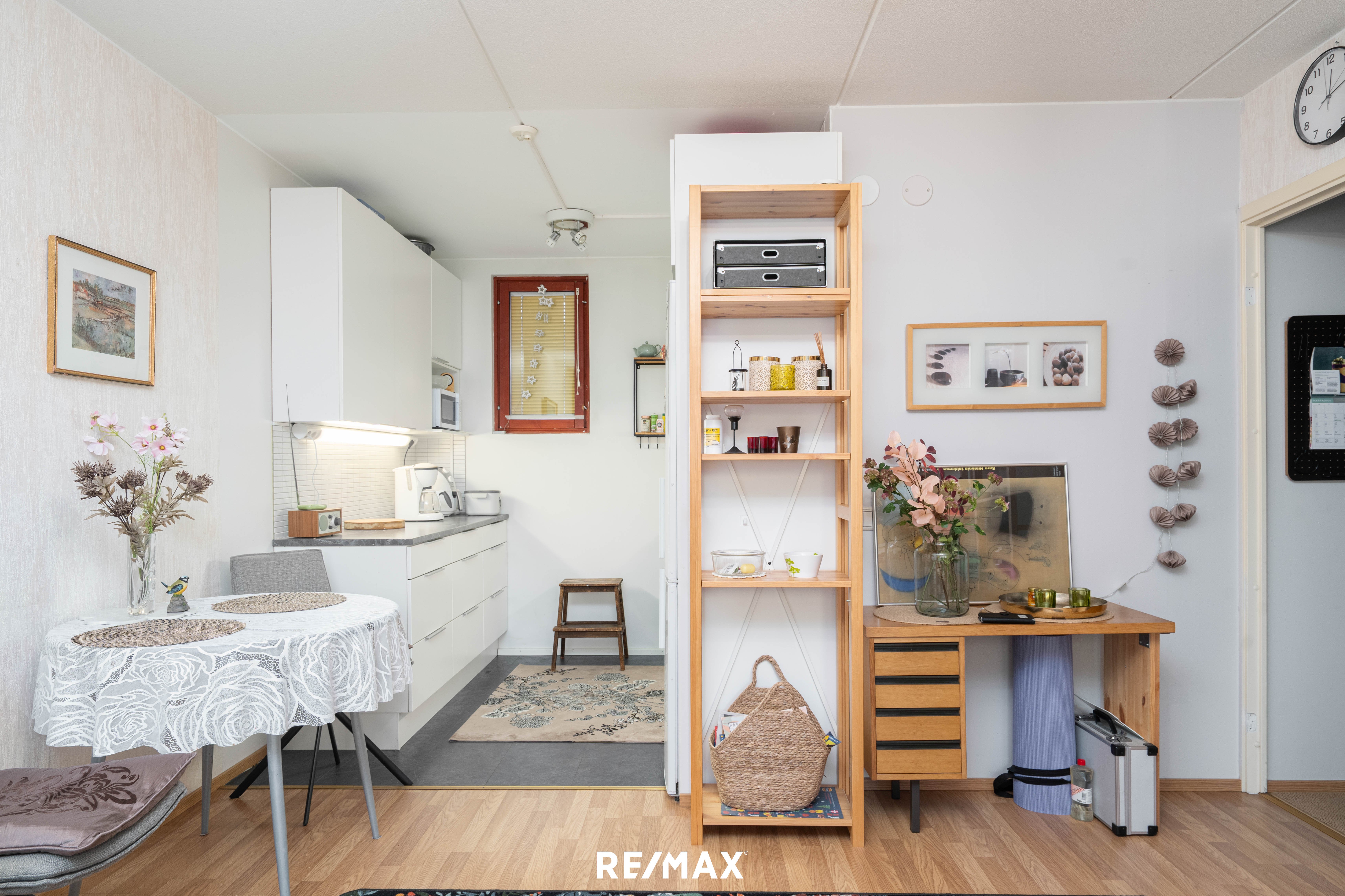 Avara olohuone kutsuu rentoutumaan – suuri ikkuna tuo runsaasti luonnonvaloa ja tekevät tilasta avaran ja kutsuvan. Makuuhuone on tilava ja rauhallinen, ja sen yhteydessä on sopivasti kaappitilaa. Säilytystilaa löytyy lisäksi eteisestä sekä taloyhtiön tilosta, joten kaikki pysyy helposti järjestyksessä.
