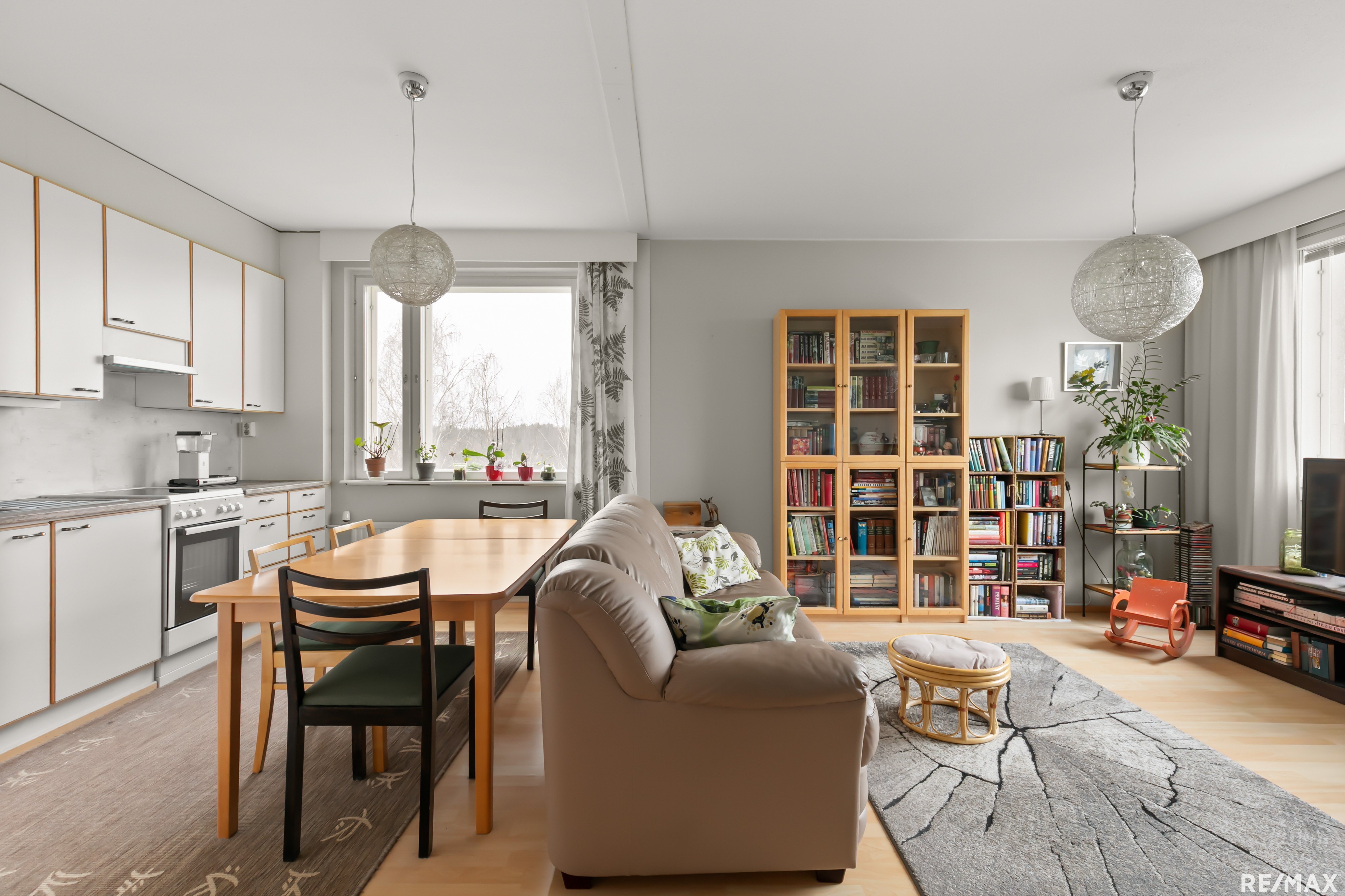 Huoneistoa on pidetty hyvin ja se on valoisa ja siistikuntoinen. Avokeittiö ja olohuone muodostavat yhtenäisen kokonaisuuden ja makuuhuoneessa on rauha levolle. Tilat toimivat niin yksin asuvalle kuin pariskunnalle ja taipuvat monenlaisiin sisustusratkaisuihin ja tilatarpeisiin.