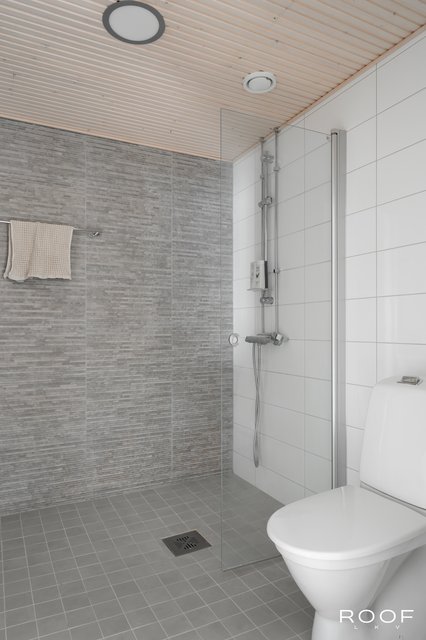 - WC-istuin, suihku, suihkuseinä, pesuallas, ja lattialämmitys