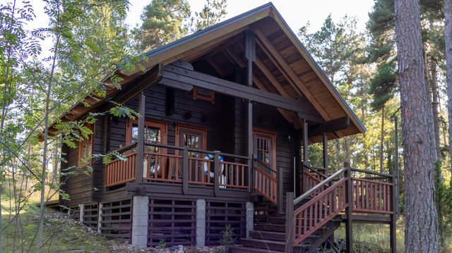 - Päärakennus on Kontio Oy:n hirsimökki ja saunarakennus Honkarakenteiden hirsimökki.