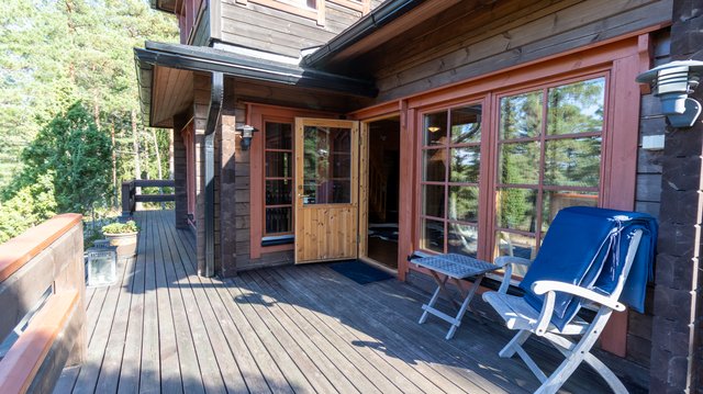 - Paljon terassia päämökin ympärillä, eli etupuolella katettu terassi, merenpuolla avoin iso terassi, josta pääsy sisälle.