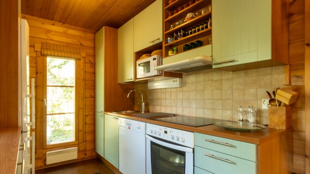 - Jääkaappipakastin, uuni, liesi, liesituuletin, mikroaaltouuni, ja astianpesukone