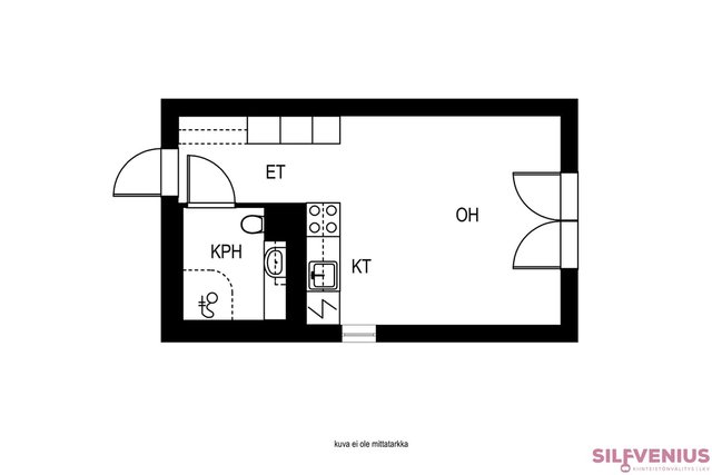 Asunnon tehokkaat 26 neliötä on suunniteltu huolella ja ranskalainen parveke tuo lisä mukavuutta asumiseen. Keittiössä on kaikki tarpeellinen: erillinen uuni, 2-levyinen induktioliesi, jenkkikaappi ja astianpesukone. Kylpyhuoneessa on mukavuuksia, kuten lattialämmitys ja tilavaraus pesukoneelle.