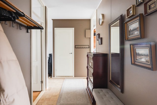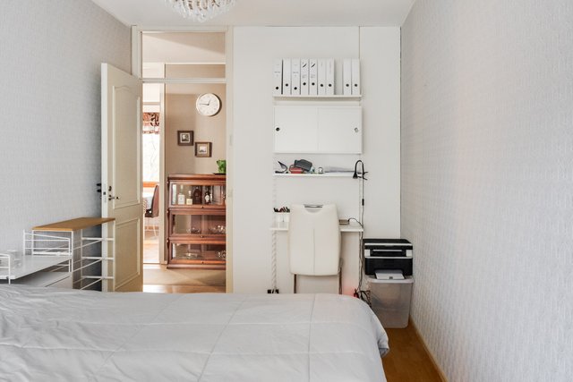 - Aulan ja olohuoneen mosaiikkiparketti on hiottu ja erittäin hyväkuntoinen. Makuuhuoneissa lautaparketti.
