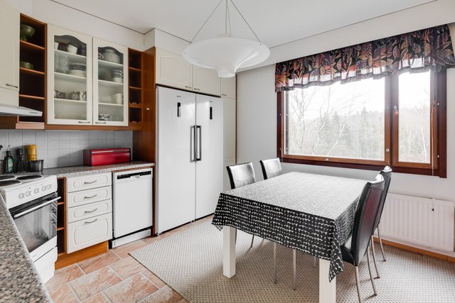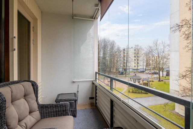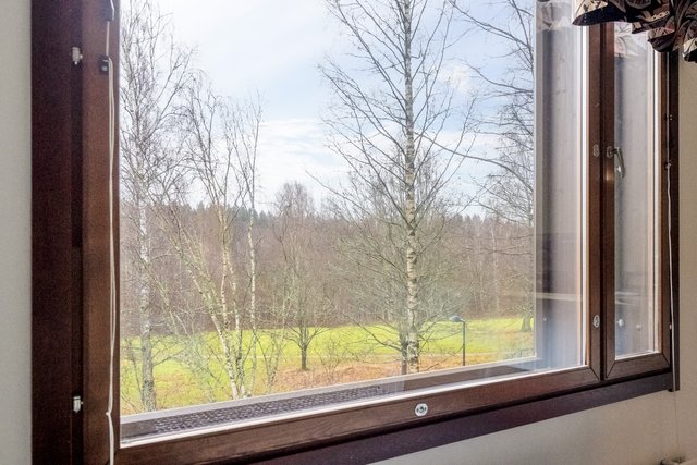 - Olohuoneesta ja toisesta makuuhuoneesta vehreälle pihalle länteen, keittiöstä ja toisesta makuuhuoneesta puistonäkymä itään.