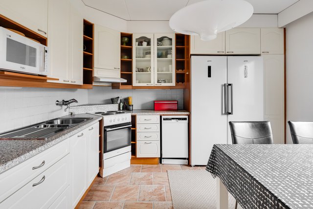- Jääkaappi, erillinen pakastin, liesi, ja astianpesukone
