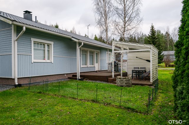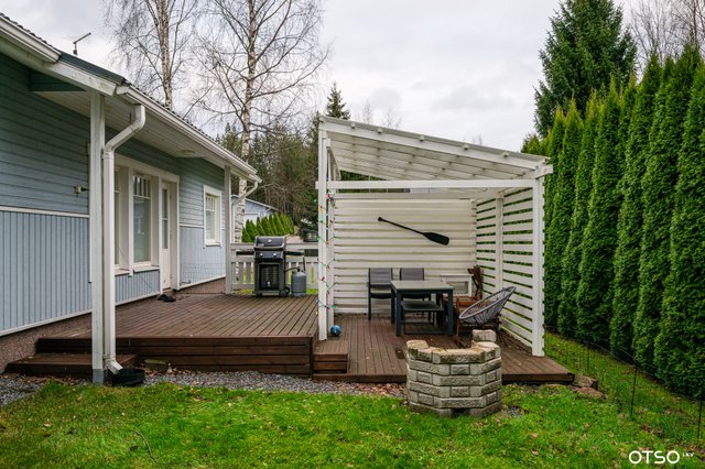 Tämä koti on suunniteltu sujuvaa asumista varten – täällä on helppo viihtyä ja rakentaa omaa unelmaa. Aurinkoinen takapiha avautuu etelään, josta löytyy rentoon oleskeluun sopiva osittain katettu terassi.