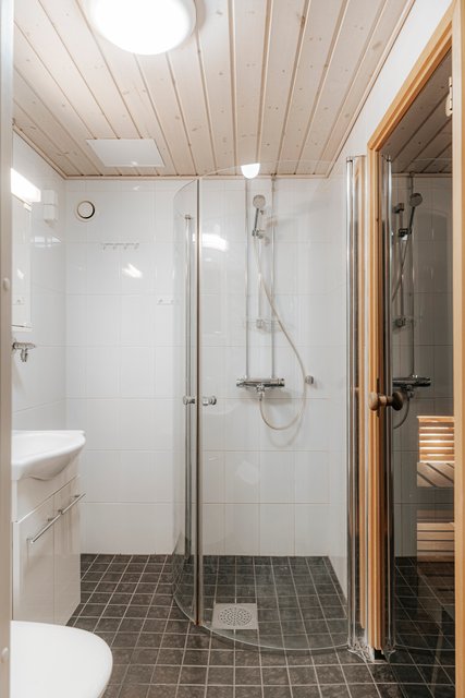 Asunnon erityisenä valttina on oma sievä sauna, joka tuo arkeen ripauksen luksusta. Säilytystilat ovat erinomaiset: tilava vaatehuone ja hyvin suunnitellut ratkaisut pitävät arjen sujuvana ja siistinä.