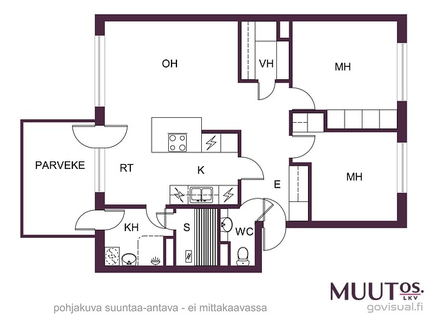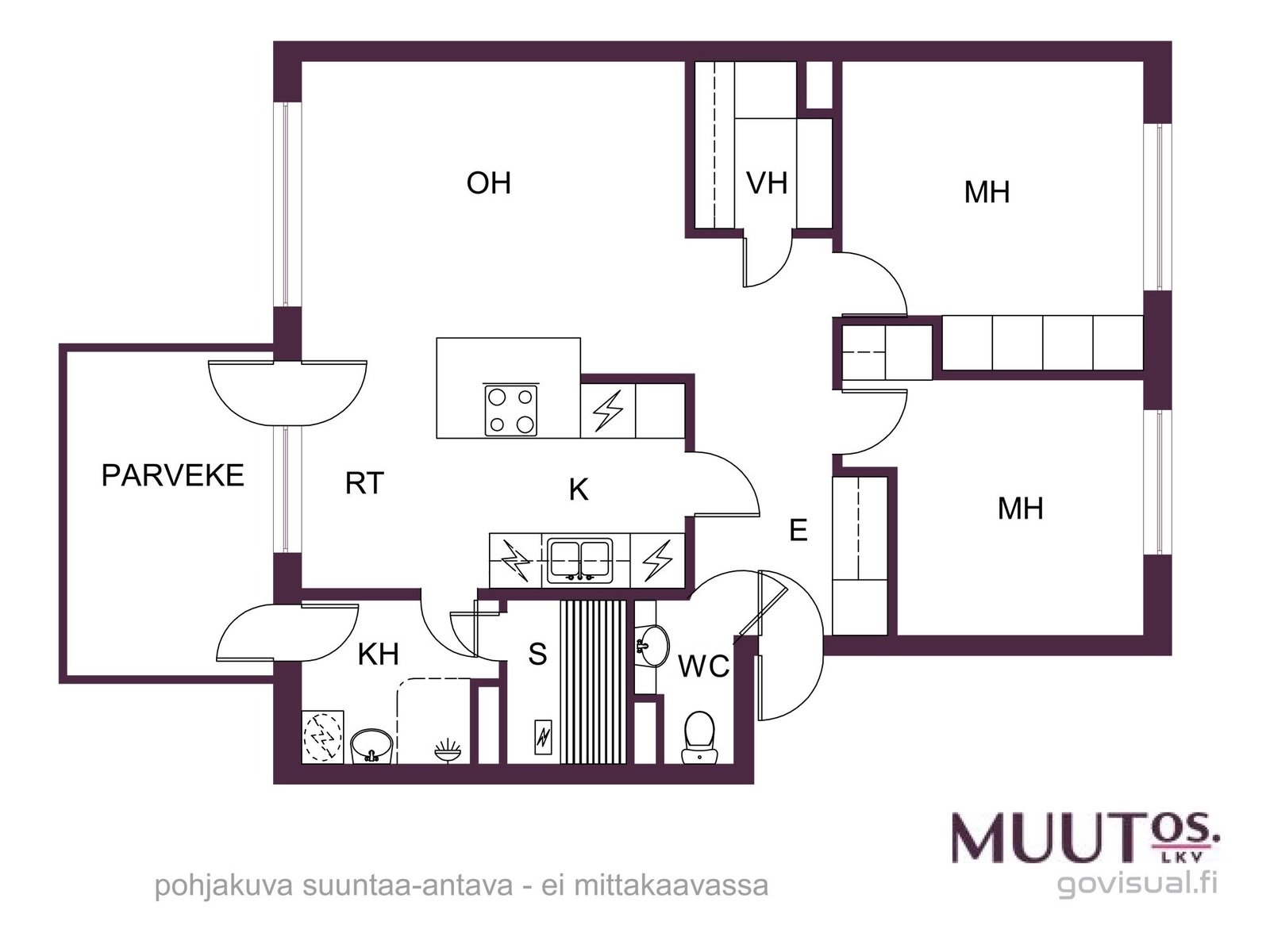 - Edellä mainittu pinta-ala saattaa tämän ikäisessä kohteessa poiketa olennaisestikin huoneiston nykyisen ja rakentamisaikaisen mittaustapojen ja standardien mukaan laskettavasta pinta-alasta. Huoneiston todellinen pinta-ala voi olla yhtiöjärjestyksessä, isännöitsijäntodistuksessa ja esitteessä mainittua pienempi tai suurempi. Hinta ei ole pinta-alaperusteinen. Yhtiöjärjestyksen mukainen huoneistoselitelmä: 3h+k+s