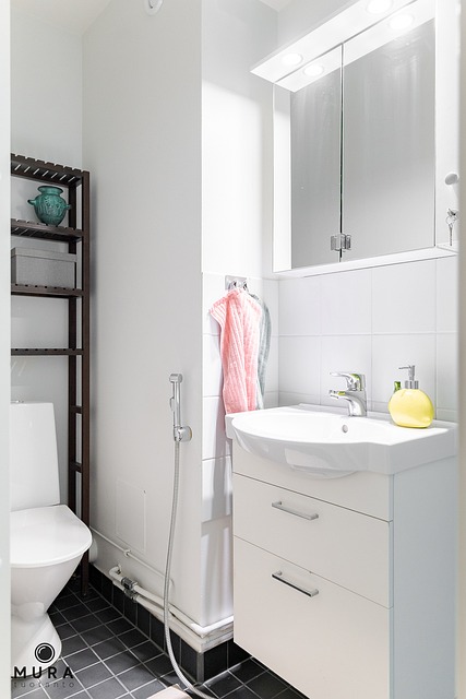 - Varustelu: wc-istuin, bidee, allaskaappi, peilikaappi ja kiinteät valaisimet. Laattalattia, seinät maalattu.