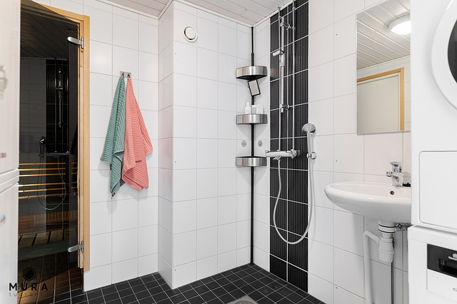 - Varustelu: suihku, peili, allas, pesukoneliitäntä, pyykkikaappi ja kiinteät valaisimet. Seinät ja lattia laatoitettu. Kylpyhuoneesta kulku parvekkeelle.