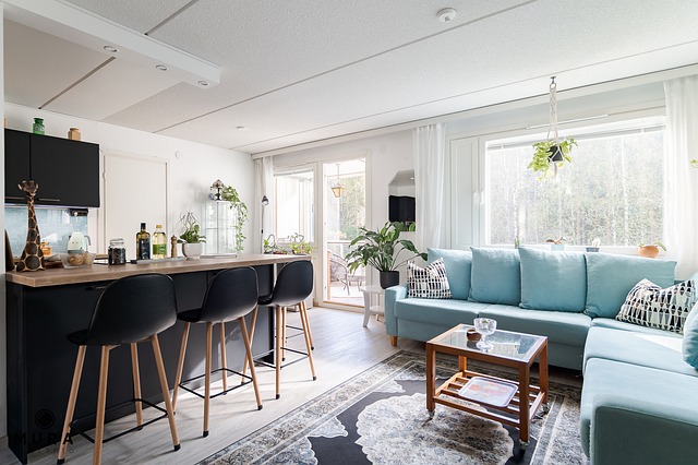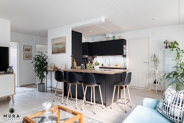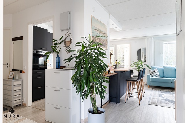 - Kiinteät kaapistot, sälekaihtimet, verhokiskot ja kiinteät valaisimet.