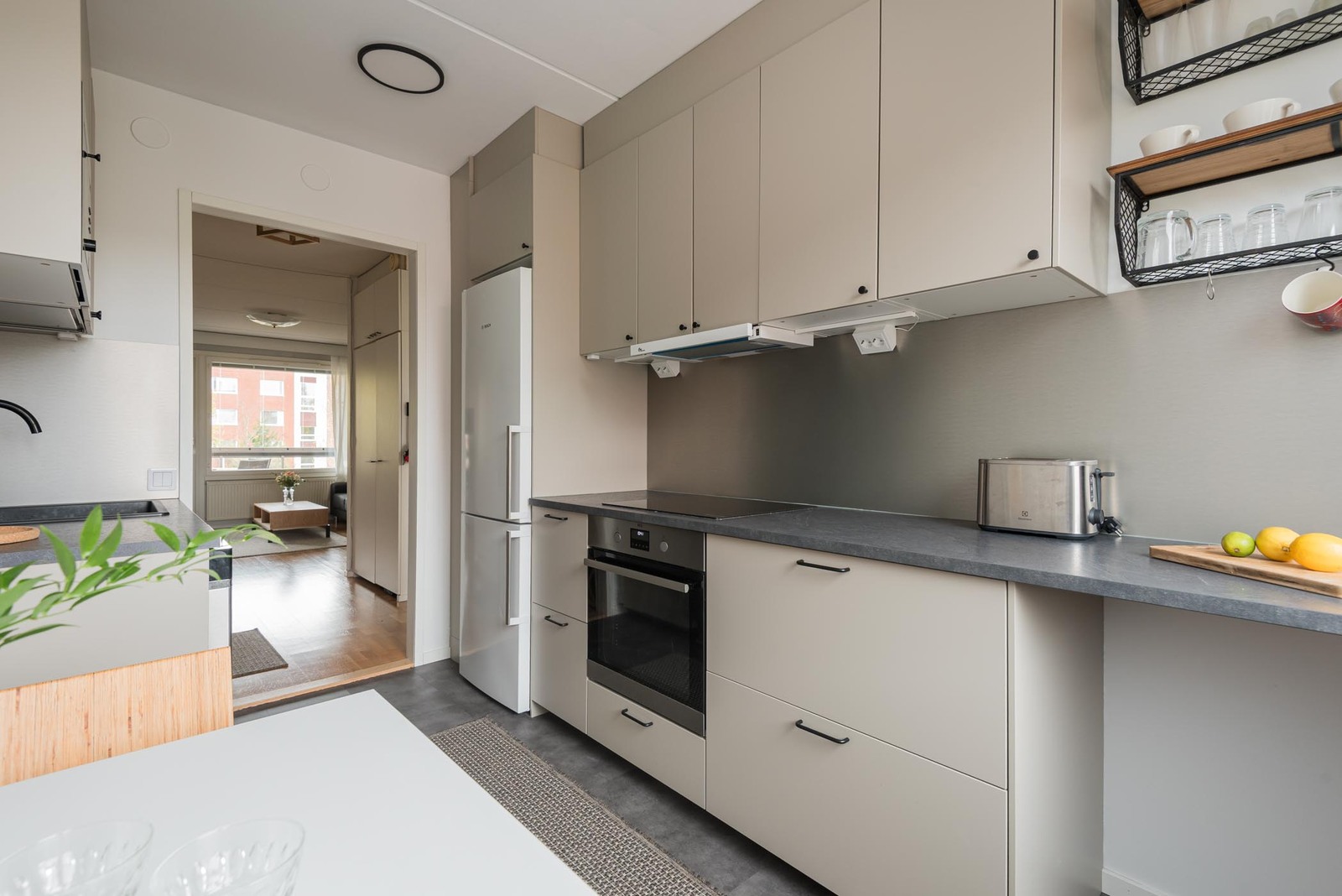 Asunnon keittiö on hiljattain remontoitu ja se tarjoaa modernit puitteet ruoanlaittoon: keraaminen liesi ja integroitu mikroaaltouuni tekevät keittiöstä toimivan ja tyylikkään. Iso lasitettu parveke saa erityismaininnan, sieltä kelpaa katsella vehreitä maisemia. Myös huoneiston seinäpintoja maalattu 2023 ja makuuhuoneeseen asennettu jalan alla mukava vinyyli. Kylpyhuoneessa on suihku ja pesukoneliitäntä, ja erillinen wc on saanut pientä päivitystä kun osa kalusteista on uusittu 2023. Asunnossa on myös oma sauna, jossa voi rentoutua pitkän päivän päätteeksi. Huoneistolle kuuluu autopaikka.