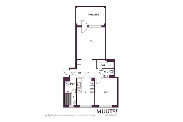 - Pinta-alaa ei ole tarkistusmitattu, mitattaessa pinta-ala saattaa olla ilmoitettua suurempi tai pienempi. Huoneiston todellinen pinta-ala voi olla yhtiöjärjestyksessä, isännöitsijäntodistuksessa ja esitteessä mainittua pienempi tai suurempi. Hinta ei ole pinta-alaperusteinen. Yhtiöjärjestyksen mukainen huoneistoselitelmä 2h + k + s.