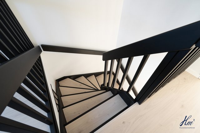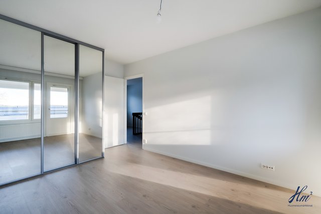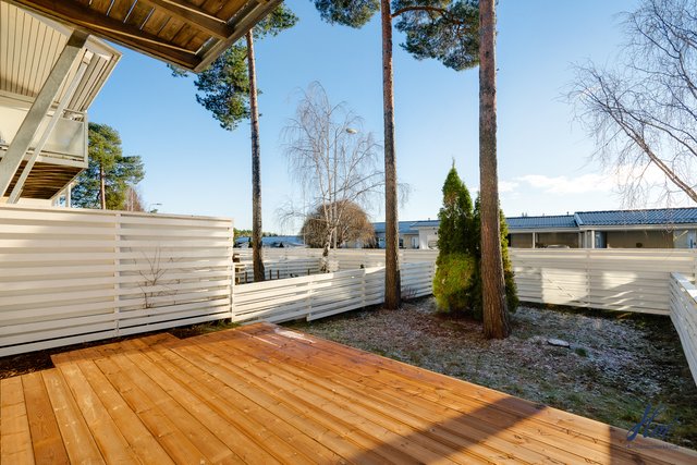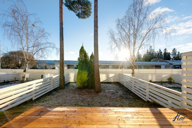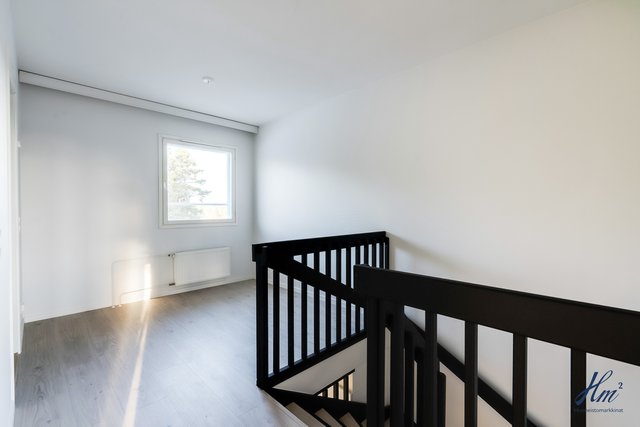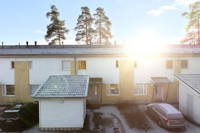 94 neliöinen koti jakautuu fiksusti kahteen kerrokseen. Sisääntulokerroksessa sijaitsee keittiö, jonne mahtuu ruokapöytä ja joka yhdistyy olohuoneeseen, makuuhuone sekä erillinen wc. Kulku takapihalle tapahtuu olohuoneen kautta. Aurinkoinen takapiha kutsuu nauttimaan kesäpäivistä. Yläkerrassa sijaitsevat loput kaksi makuuhuonetta, pesuhuone- ja saunaosasto, vaatehuone, aula ja tilava parveke. Säilytystilaa tuo etupihalla oleva erillinen varasto, ja autopaikka löytyy suoraan etuoven edestä.
