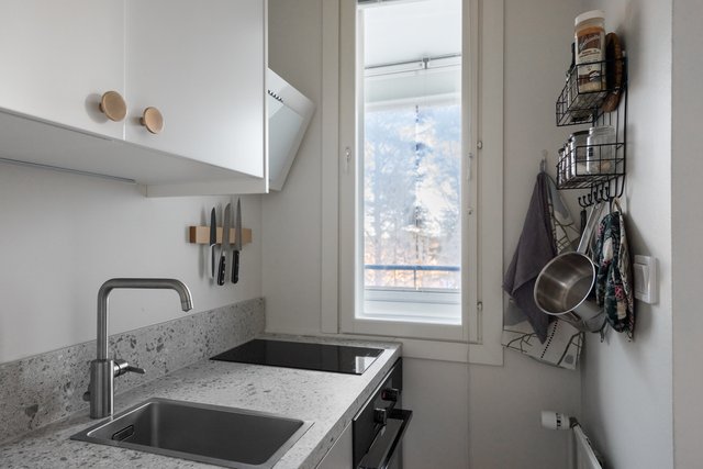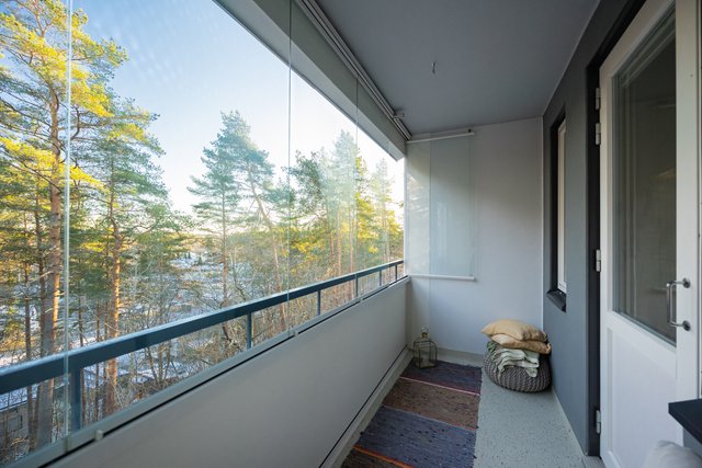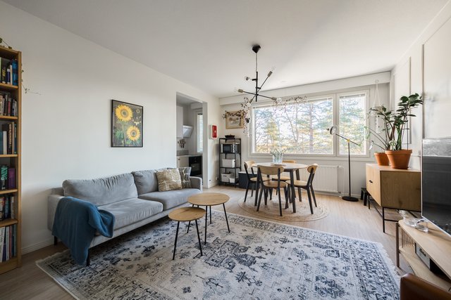 Siistinä pidetty remontoitu huoneisto, jossa loistava pohjaratkaisu. Tyylikäs harmaan sävyinen kylpyhuone on uusittu, keittiö on tätä päivää ja yhtenevät vinyylilattiat kiertävät ympäri asunnon. Olohuoneen yhteydessä ylimääräinen tila liukuovella, joka toimii loistavasti etätyöhuoneena tai vaatehuoneena. Lasitettu parveke toimii kivana aamukahvipaikkana aamuauringon suuntaan. Sana moderni kuvaa hyvin tätä asuntoa!