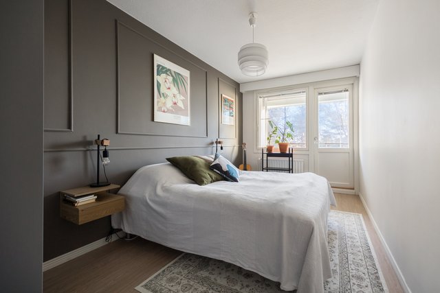 - Remontoitu makuuhuone. Kaunis sävyseinä.