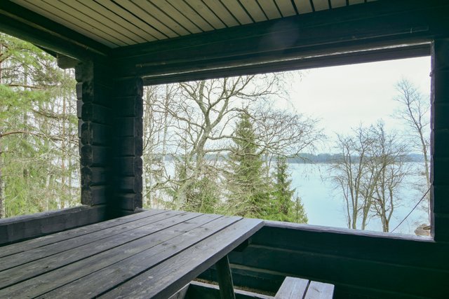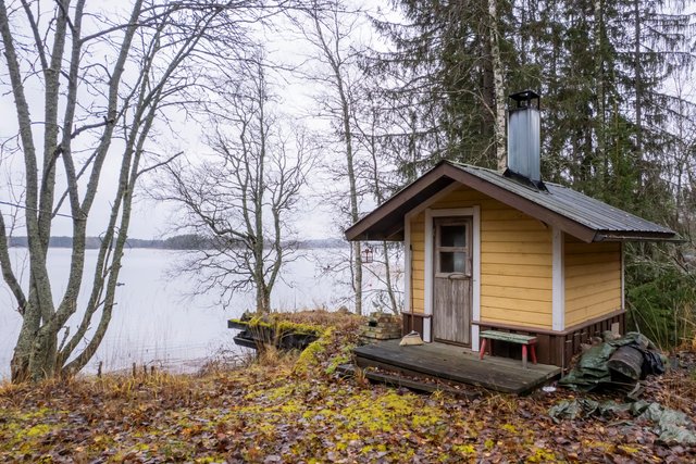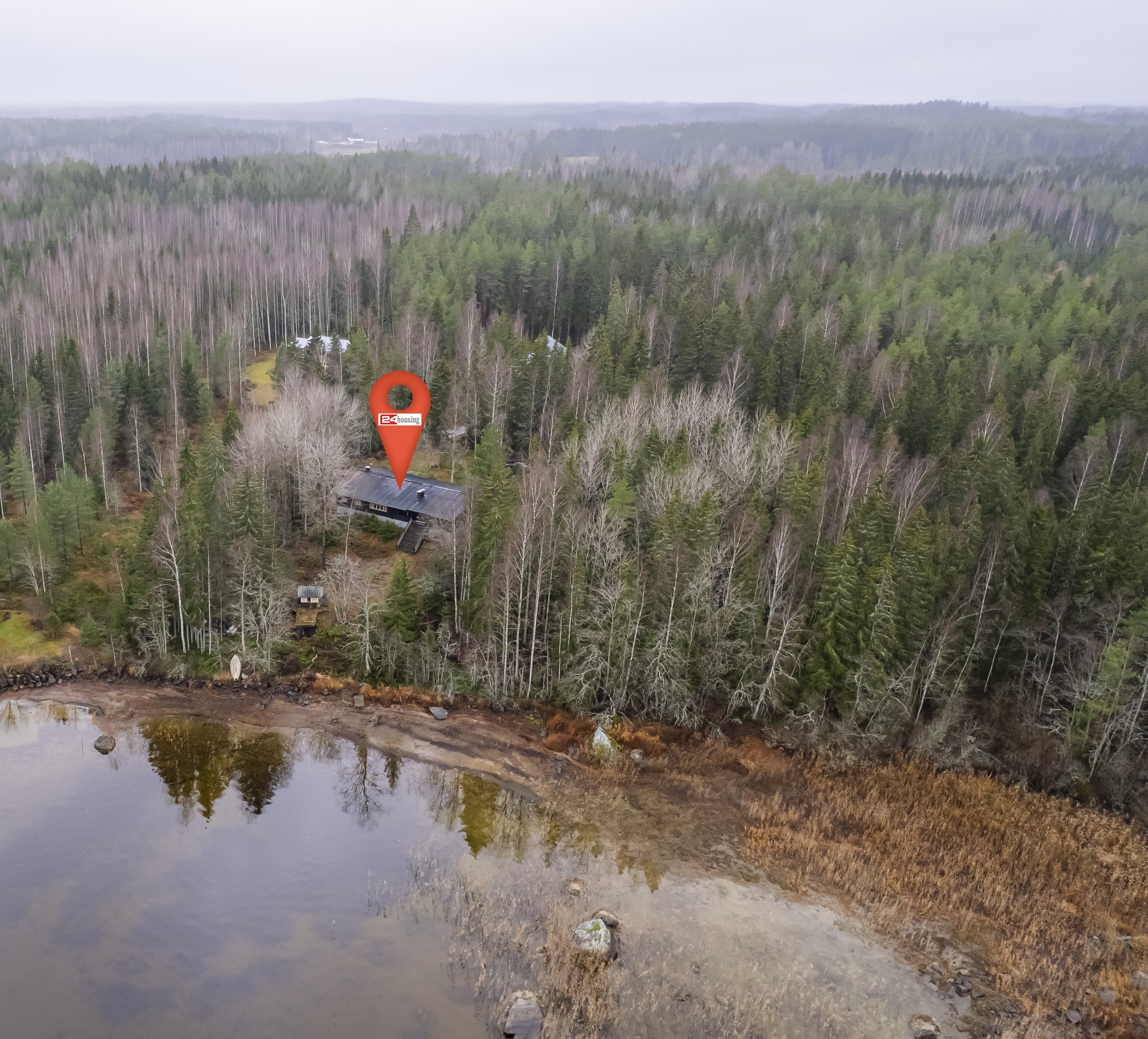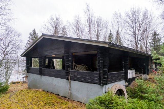 Omakotitalo/vapaa-ajan asunto järven rannalla.