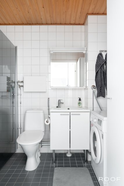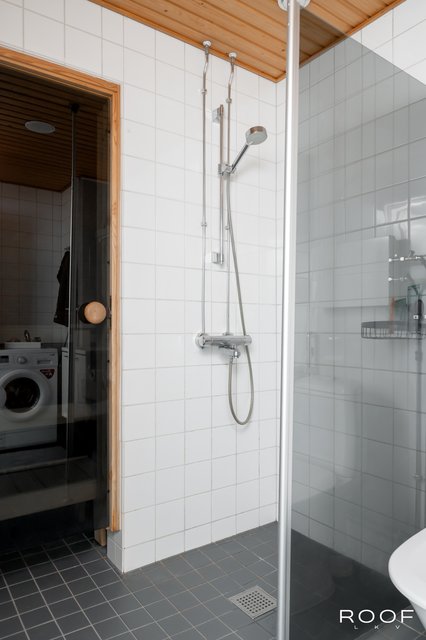 Kylpyhuoneen yhteydessä sijaitsee kodin oma sauna, jossa voit rentoutua ja hemmotella itseäsi päivän päätteeksi. Laatoitetussa kylpyhuoneessa on myös tilaa pyykinpesukoneelle.