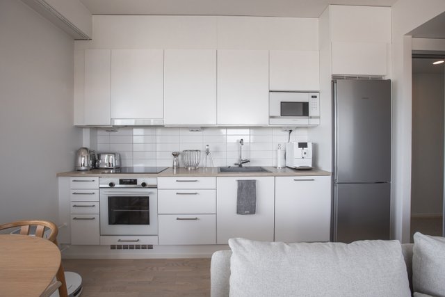 - Jääkaappipakastin, uuni, liesi, liesituuletin, ja astianpesukone