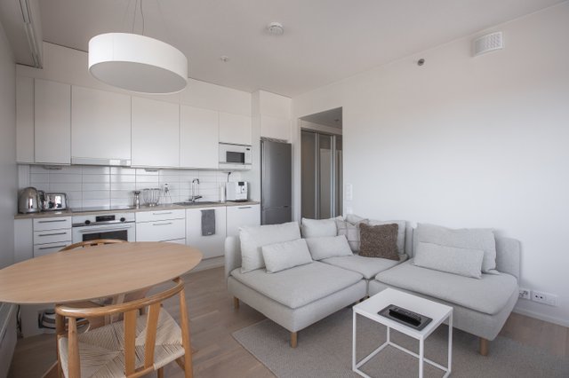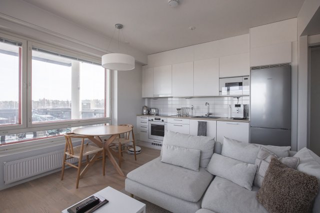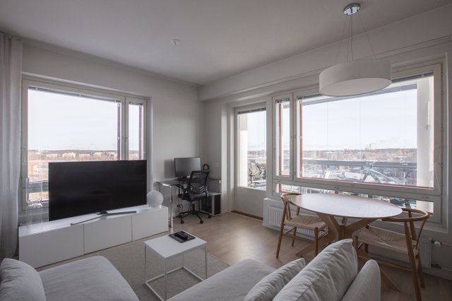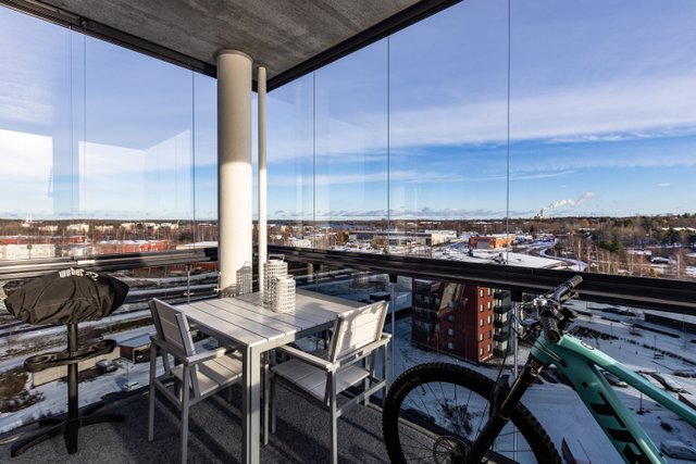 Tämä hyvin pidetty koti sijaitsee v.2021 valmistuneen taloyhtiön 10.kerroksessa. Kodin kaikista ikkunoista avautuu upeat maisemat. Olohuoneesta on käynti tilavalle lasitetulle maisemaparvekkeelle. Makuuhuoneessa on rauhallinen tunnelma ja hyvin kaappitilaa. Kookas kylpyhuone ja ikkunallinen sauna.