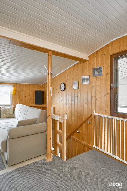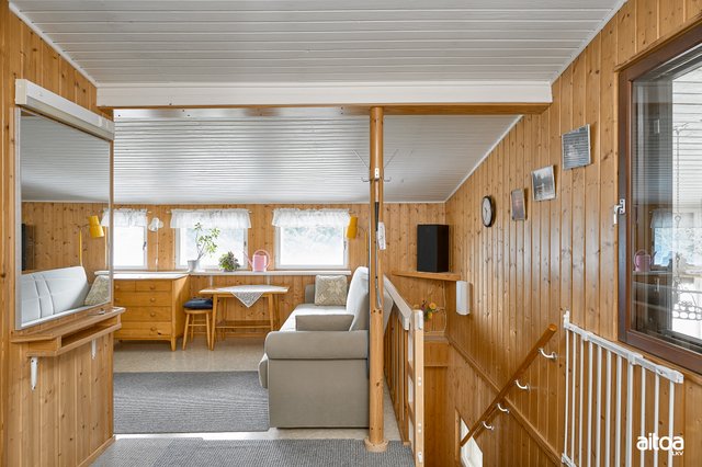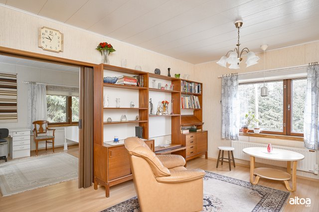 Vaikka taloa on ylläpidetty huolella, vaatii se jo päivittämistä nykyhetkeen. Pohjaratkaisu antaa mahdollisuuksia niin lisähuoneille, kuin etätyömahdollisuudelle ja tänne mahtuu isompikin perhe viihtymään.