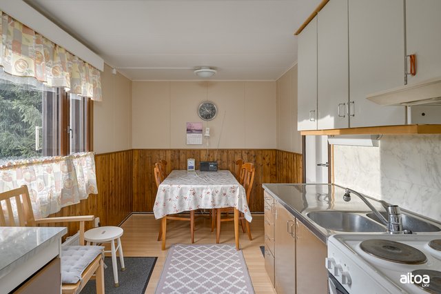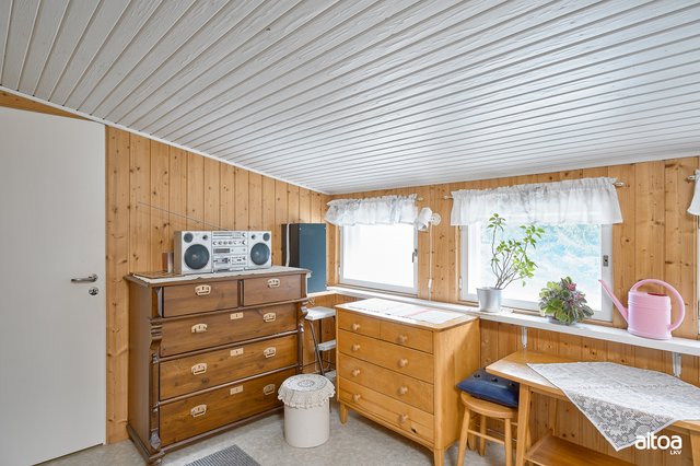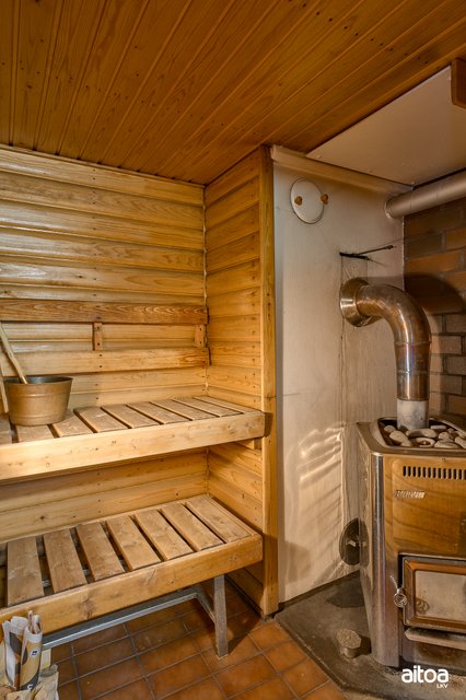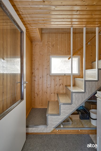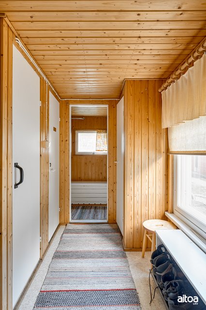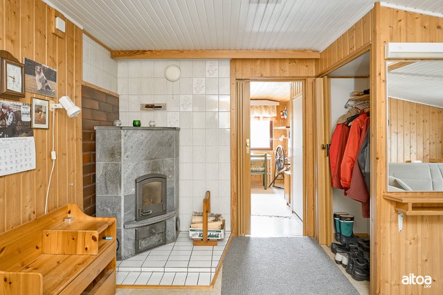 - Eteisessä varaava takka. Lisäksi oleskelutila josta mahdollista tehdä makuuhuone.