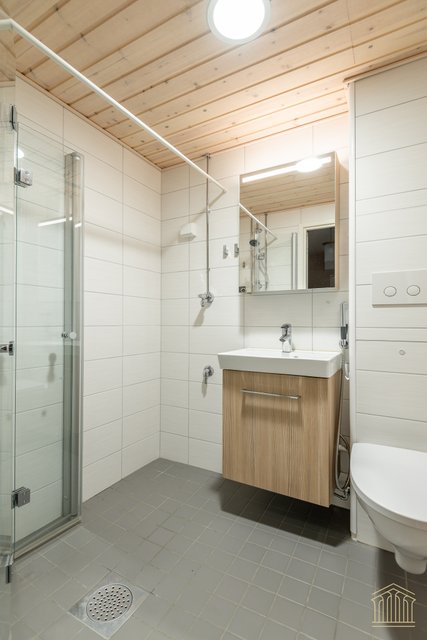 - WC-istuin, suihku, lattialämmitys, allaskaappi, pesuallas, bidee-suihku, peilikaappi, ja suihkuseinä