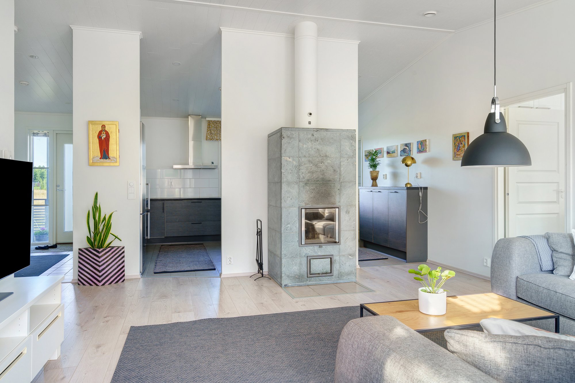 Valoisa ja toimiva koti, jossa 3 makuuhuonetta, hyvät säilytystilat (sisältäen kaksi vaatehuonetta, kaapistot ja ulkovaraston) sekä kodinhoitohuoneen uloskäynnillä. Olohuoneesta on käynti katetulle terassille ja aidatulle takapihalle. Lämmönlähteenä toimii vesikiertoinen lattialämmitys, lisäksi varaava takka luo myös lämpöä sekä tunnelmaa.