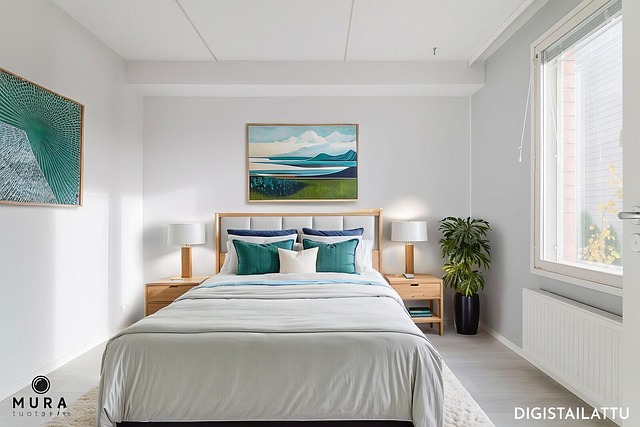 Asunnon toimiva pohjaratkaisu tarjoaa tilavat ja viihtyisät oleskelutilat. Suuri olohuone ja keittiö muodostavat avaran kokonaisuuden, joka soveltuu hyvin niin arkeen kuin juhlaan. Kolme makuuhuonetta, tilava kylpyhuone ammeineen, oma sauna sekä erillinen kodinhoitohuone tekevät asumisesta mukavaa ja käytännöllistä.