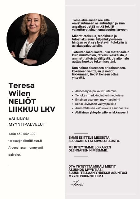 Tätä asuntoa myy Teresa Wilén, Asunnon myynti ja vuokraus palvelut.