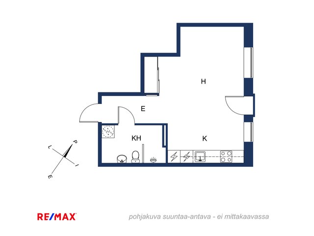 - - Kaapistot - Astianpesukone (integroitu) - Jääkaappi / pakastin - Mikroaaltouuni (integroitu) - Liesi (induktio) Lattia: parketti Seinät: maalattu