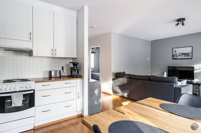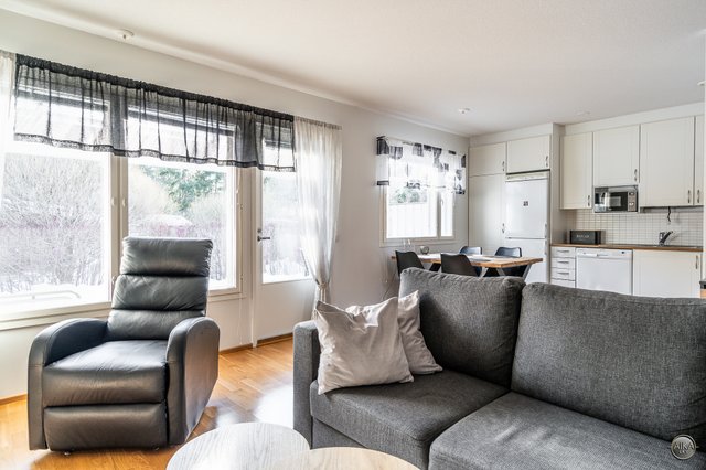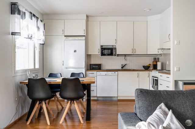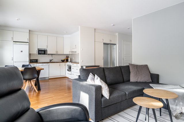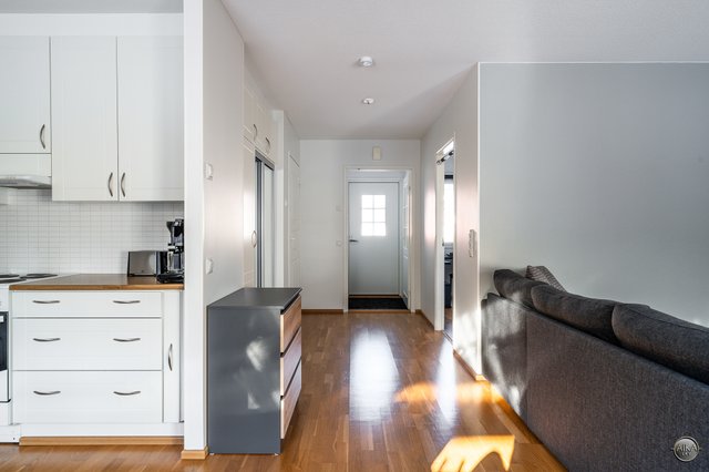 Asunnon toimiva pohjaratkaisu, vaaleat pinnat ja isot ikkunat tekevät tästä kodista avaran ja viihtyisän. Tilava olohuone ja avokeittiö yhdistyvät luontevasti, ja olohuoneesta avautuu koko asunnon levyinen eteläterassi, jossa voit nauttia auringosta ja rauhasta. Makuuhuoneessa on reilusti säilytystilaa ja oma sauna kruunaa kokonaisuuden. Asunnossa on huoneistokohtainen ilmanvaihtokone, lattialämmitys sekä oma ulkovarasto.