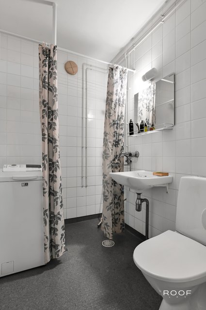 - WC-istuin, suihku, pesukoneliitäntä, peili, ja pesuallas