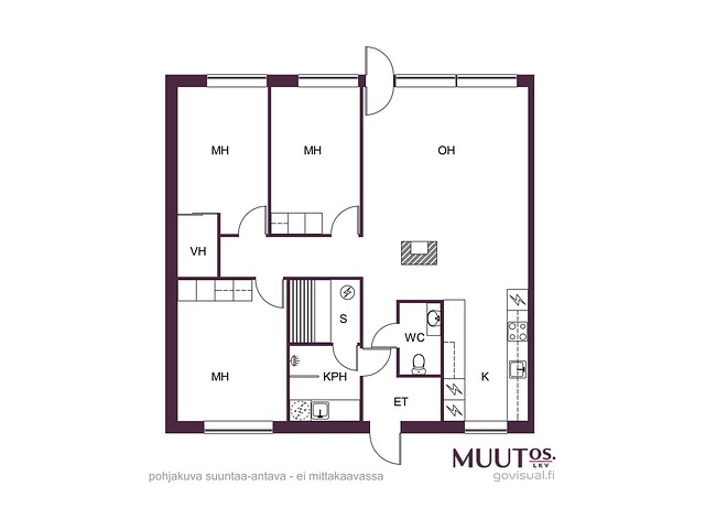 Koti on yhdessä tasossa ja tarjoaa toimivan pohjaratkaisun arjen sujuvuuteen. Tilava olohuone ja moderni, kivitasoineen uusittu keittiö muodostavat viihtyisän oleskelutilan, jota täydentää puolivaraava takka tuoden lämpöä ja tunnelmaa. Kolme makuuhuonetta tarjoavat hyvin tilaa perheelle, vieraille tai etätyölle, ja säilytystilaa löytyy runsaasti kiinteistä kaapeista, vaatehuoneesta ja erillisestä varastosta.