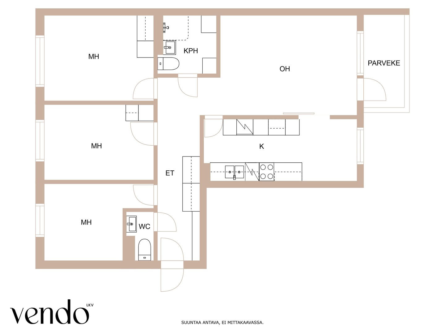 - Isännöitsijäntodistuksen mukainen, (Pinta-ala ei ole tarkistusmitattu ja todellinen pinta-ala voi olla suurempi tai pienempi, kuin ilmoitettu)
