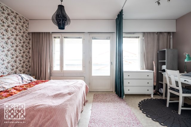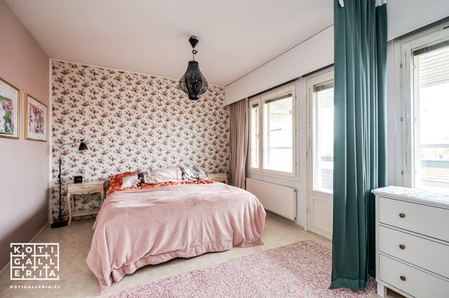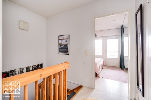 - Makuuhuoneet 2. kerroksessa. Toisesta käynti isolle parvekkeelle. Molemmissa makuuhuoneissa komeroita