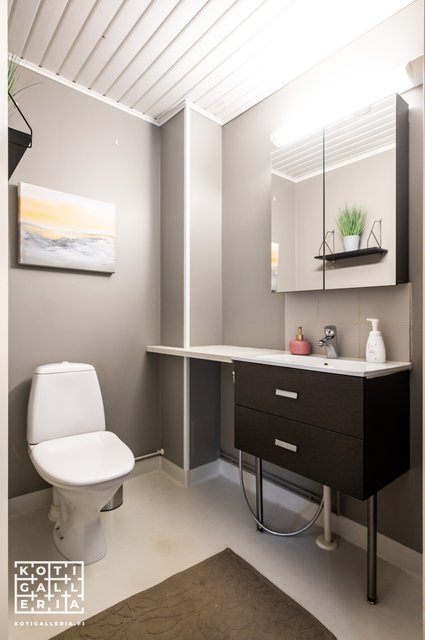 - Suihku, wc-istuin, pesuallas, peilikaappi, pesukoneliitäntä, ja bidee-suihku