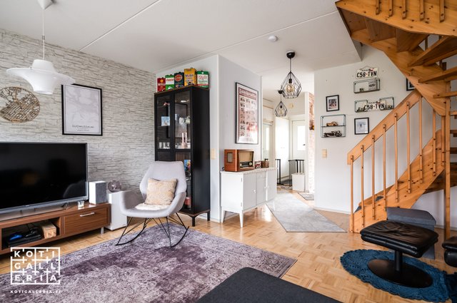Asunnon 82 m² jakautuvat kahteen kerrokseen ja tilava pohjaratkaisu tekee siitä ihanteellisen kodin.