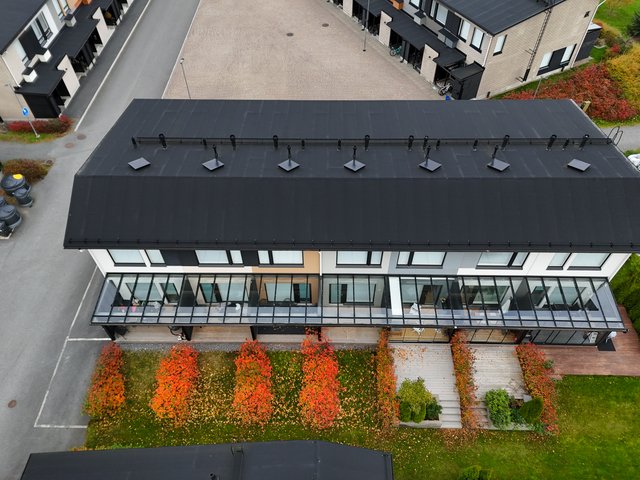 - Hallitus on 31.5.2018 myöntänyt luvan muuttaa autolämmityspistorasia latauskäyttöön seuraavin ehdoin: latauspisteessä on oltava luotettava energiamittaus, jonka lukeminen onnistuu huoltoyhtiön toimesta. Mittari luetaan muiden taloyhtiön mittareiden kanssa kerran vuodessa, ja paikka voidaan ottaa käyttöön vasta isännöitsijän hyväksynnän jälkeen. Muutoksen jälkeen laskutetaan 200 € sähköennakko. Käytetystä energiasta veloitetaan taloyhtiön maksaman sähkön hinta sekä mahdolliset isännöinnin luenta- ja laskutuskulut. Latausvirta saa olla enintään 8 A, ja osakas vastaa, ettei käytetty laite ylitä sallittua kuormitusta. Latauspaikkojen lisääntyessä virtaa voidaan joutua rajoittamaan. Kaikista muutostöistä ja mahdollisista ennallistamiskuluista vastaa osakas. Kaupanteossa myyjän on luovutettava ostajalle avainten kirjausten mukainen määrä toimivia avaimia. Mikäli määrä ei täsmää, tulee lukitus sarjoittaa uudelleen. Yhtiökokous 6.5.2025 valtuutti hallituksen keräämään tarvittaessa kahden kuukauden hoitovastikkeet sekä nostamaan pääomavastikkeita ilman erillistä yhtiökokousta, mikäli lainanhoito sitä edellyttää. Yhtiökokous 8.3.2018 totesi, ettei ilmalämpöpumppujen asentamista rajoiteta, mutta asennuksesta on tehtävä muutostyöilmoitus ja huolehdittava, ettei melu ylitä sallittua tasoa. Yhtiökokous 17.4.2019 käsitteli terassien laajennukset: alkuperäisissä kuvissa oleva varaus mahdollistaa laajennuksen ilman rakennuslupaa, mutta erillistä ohjetta ja muutostyöilmoitusta on noudatettava sekä tehtävä vastuunjakosopimus. Yhtiökokous 13.4.2022 päätti sähköautolatauspaikkojen vaiheittaisesta lisäämisestä ja erillisestä suunnitelmamallista. Asunnoissa tilavaraus lämminpintaiselle takalle sekä hormille. Sisääntuloreittien yhteyteen ja yleisten tilojen valvontaan on toteutettu tallentava kameravalvonta.