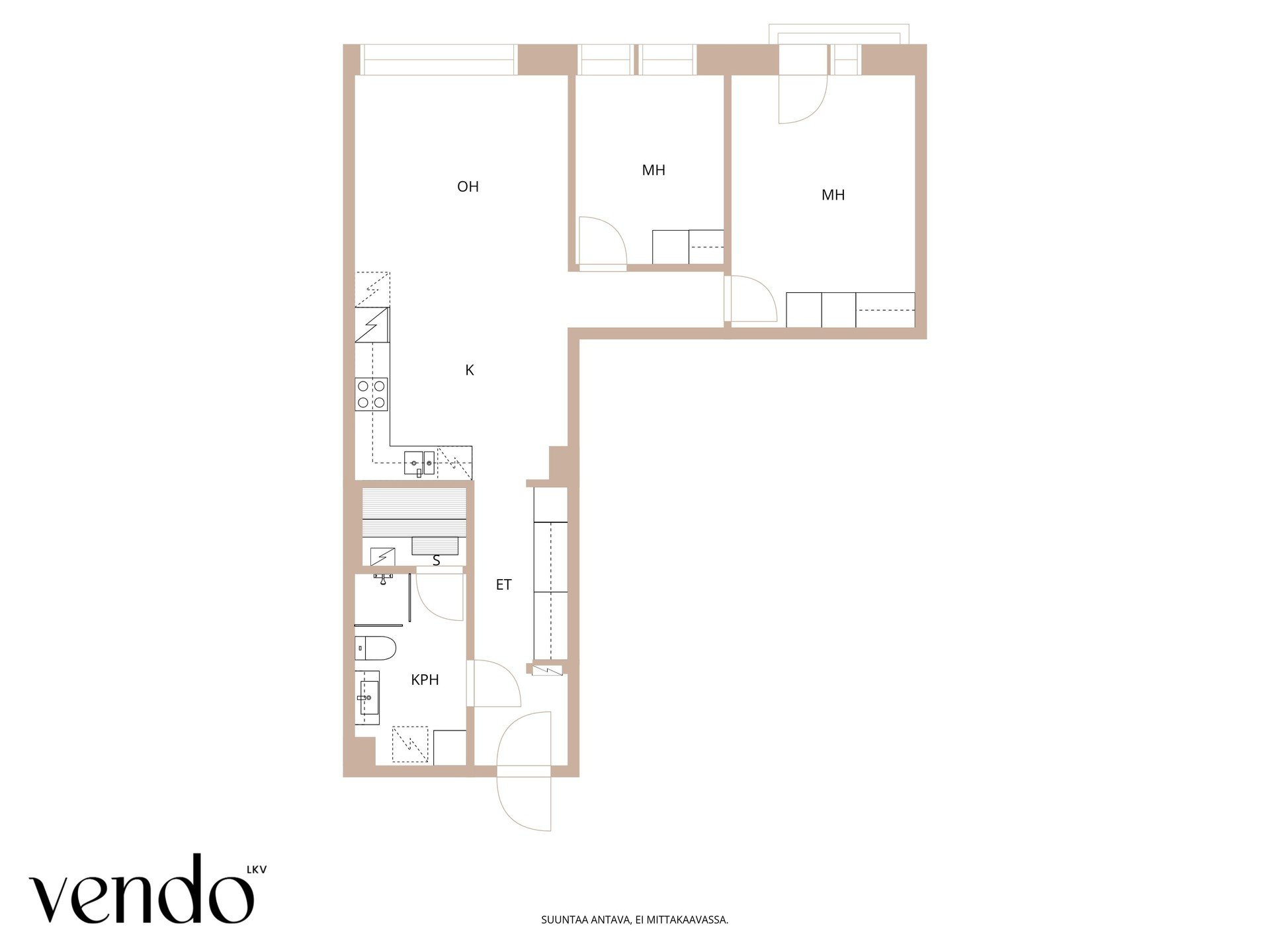Valoisa kolmio suositusta taloyhtiöstä Lauttasaaressa