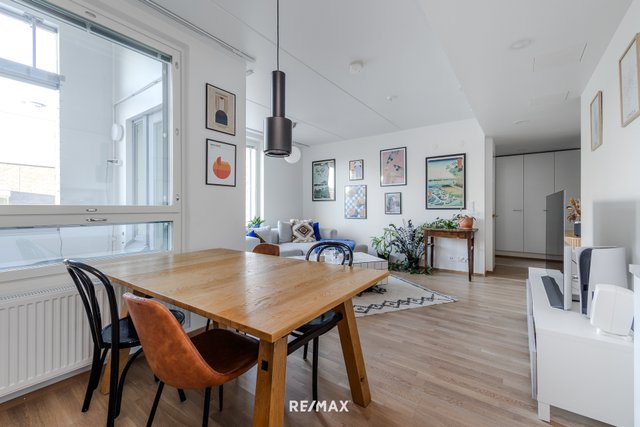 Tämä valoisa kaksio sijaitsee Pohjois-Pasilan Postipuistossa, Helsingin Keskuspuiston läheisyydessä. Asunto on valmistunut vuonna 2022 ja sijaitsee ylimmässä, viidennessä kerroksessa. Modernissa asunnossa on avara pohjaratkaisu, jossa olohuone ja keittiö muodostavat viihtyisän kokonaisuuden. Keittiö on hyvin varusteltu, ja asunnossa on myös lasitettu parveke. Lattiat ovat kaunista tammiparkettia.