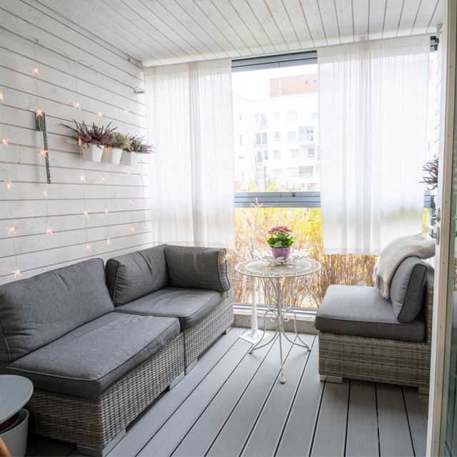 - Lasitettu, suojainen näkymä pihan puolelle.