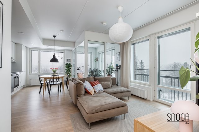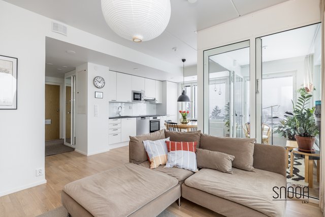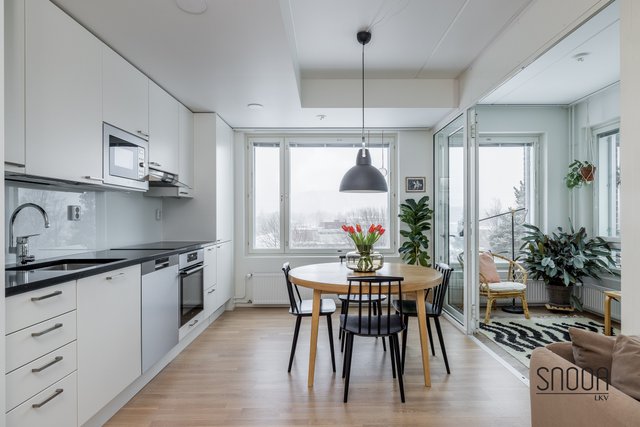 Upea tilaisuus hankkia valoisa ja avara asunto Pohjois-Pasilasta! Tämä moderni, vuonna 2023 valmistunut kolmio sijaitsee kuudennessa kerroksessa, tarjoten upeat näkymät ympäristöön. Asunnossa on kaksi makuuhuonetta, joissa on kauniit parkettilattiat, ja tilava olohuone, joka yhdistyy moderniin keittiöön ja josta pääsee lämpimälle parvekkeelle/viherhuoneeseen.